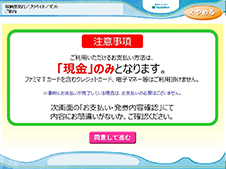 - お客様がインターネット上のサイトでお申込み・ご注文された代金を、ファミリーマートの店頭レジにて現金でお支払い頂ける方法です。