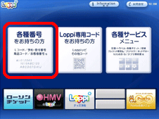 1) Loppiトップ画面左上の「各種番号をお持ちの方」ボタンを押して下さい。