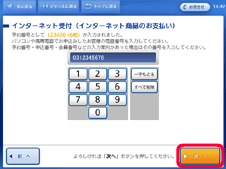 3) お申込み・ご注文時に登録した電話番号、または表示された予約番号を入力し「次へ」を押して下さい。