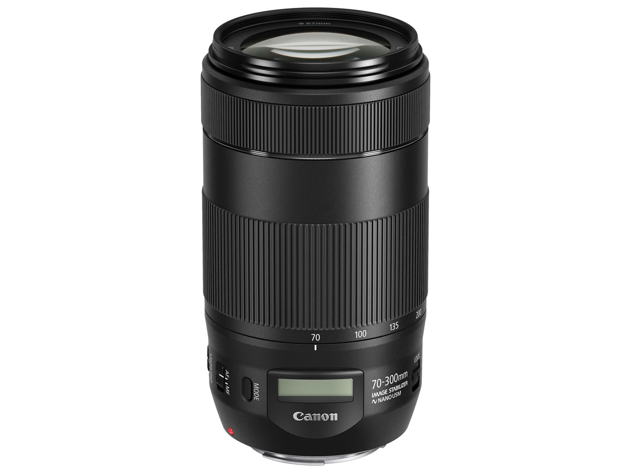 高速でスムーズなAFを実現するナノUSMを新たに搭載。ファインダー撮影はもちろん、動画撮影やライブビューによる静止画撮影時に速くてなめらかなAFを可能にします。レンズ上面には撮影距離や焦点距離などの撮影情報を表示する液晶画面を搭載。撮影の楽しさがさらに広がります。光学系はUDレンズ1枚を採用。色収差を良好に補正し高解像感・高コントラストを実現。レンズ外観は洗練された機能美を感じさせるデザインです。