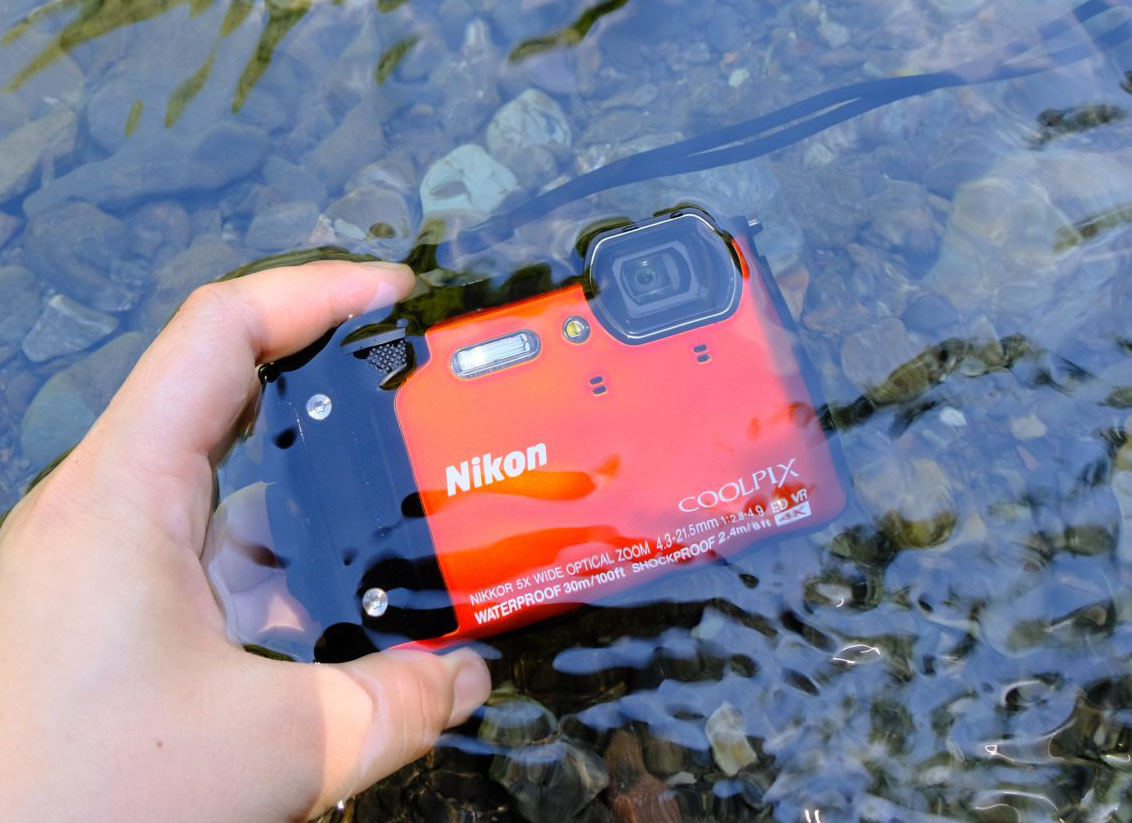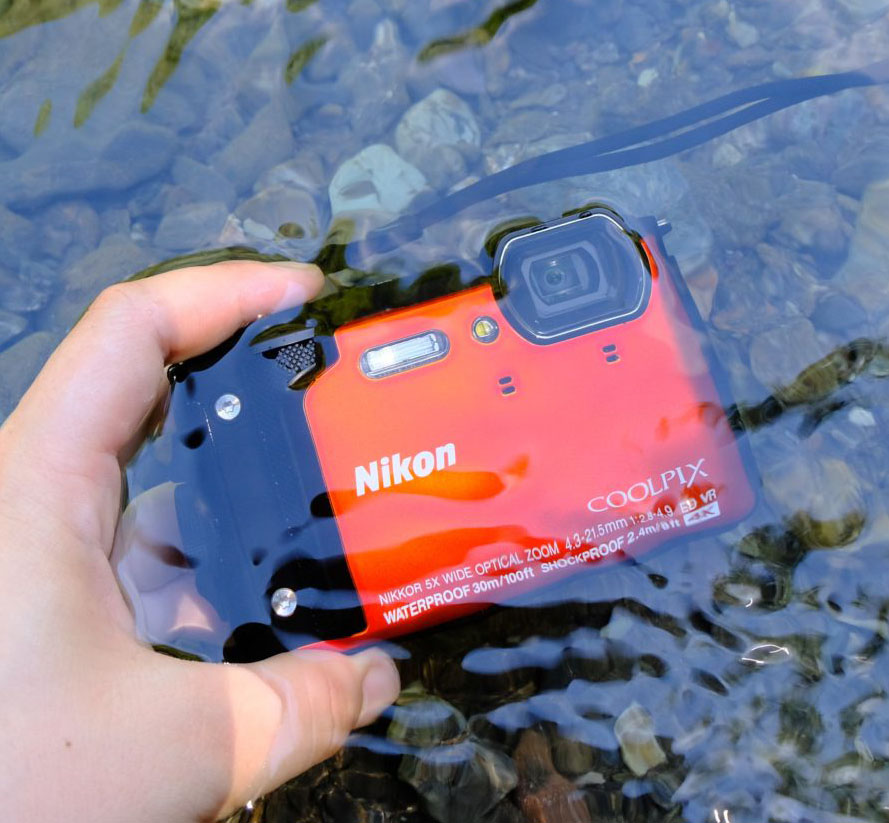 W300は角ばったボディがスマートでかっこよくて、アウトドアに向いている防水カメラです。川で使うなら、川の中でも目立ちやすいオレンジのボディがおすすめ!