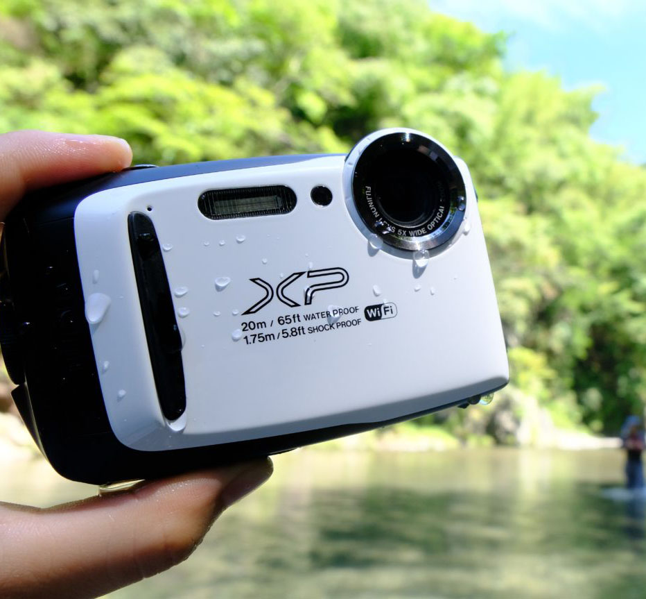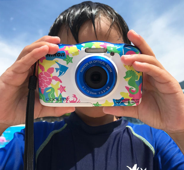 XP-130は、ポケットに入れやすいちょうどいい大きさで、フィット感があって握りやすい防水カメラです。プールで使うなら、プールの雰囲気に溶け込む黄色のボディがおすすめ!