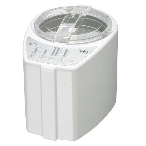 山本電気の精米機「MICHIBA KITCHEN PRODUCT RICE CLEANER 匠味米 Premium White MB-RC23W」は、あの有名料理人・道場六三郎の食味評価により、精米状態を決定しプログラム化した家庭用精米機です。