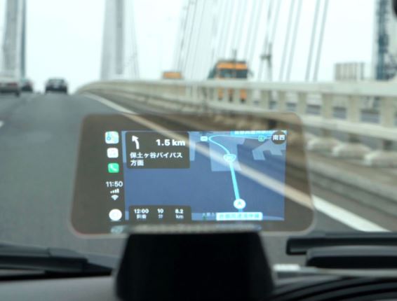 フロントガラスに映るヘッドアップディスプレイではなく、本体についているスクリーンに投影されるヘッドアップディスプレイです。表示画面はオーバーレイ表示され、進行方向に視界を妨げることなく、本体のスクリーンを確認することができます。