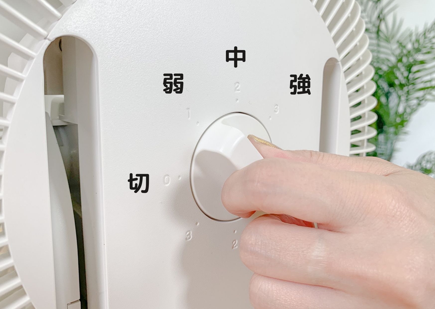 弱や中でも比較的風量が多いので、リビングなどの部屋の空気の循環に使うなら音の静かな弱や中、洗濯物に風を当てて早く乾かすときに使うなら強といったように使い分けが可能です。