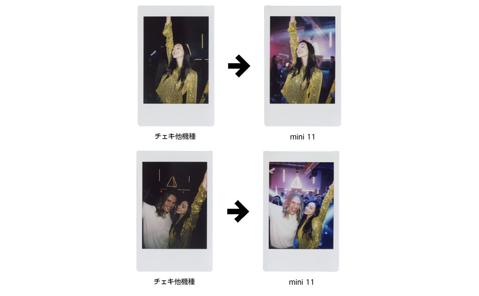 フラッシュの光で暗くぼんやりとしていた背景も、instax mini11では自動で人物は自然に背景は明るく写せるようになりました。